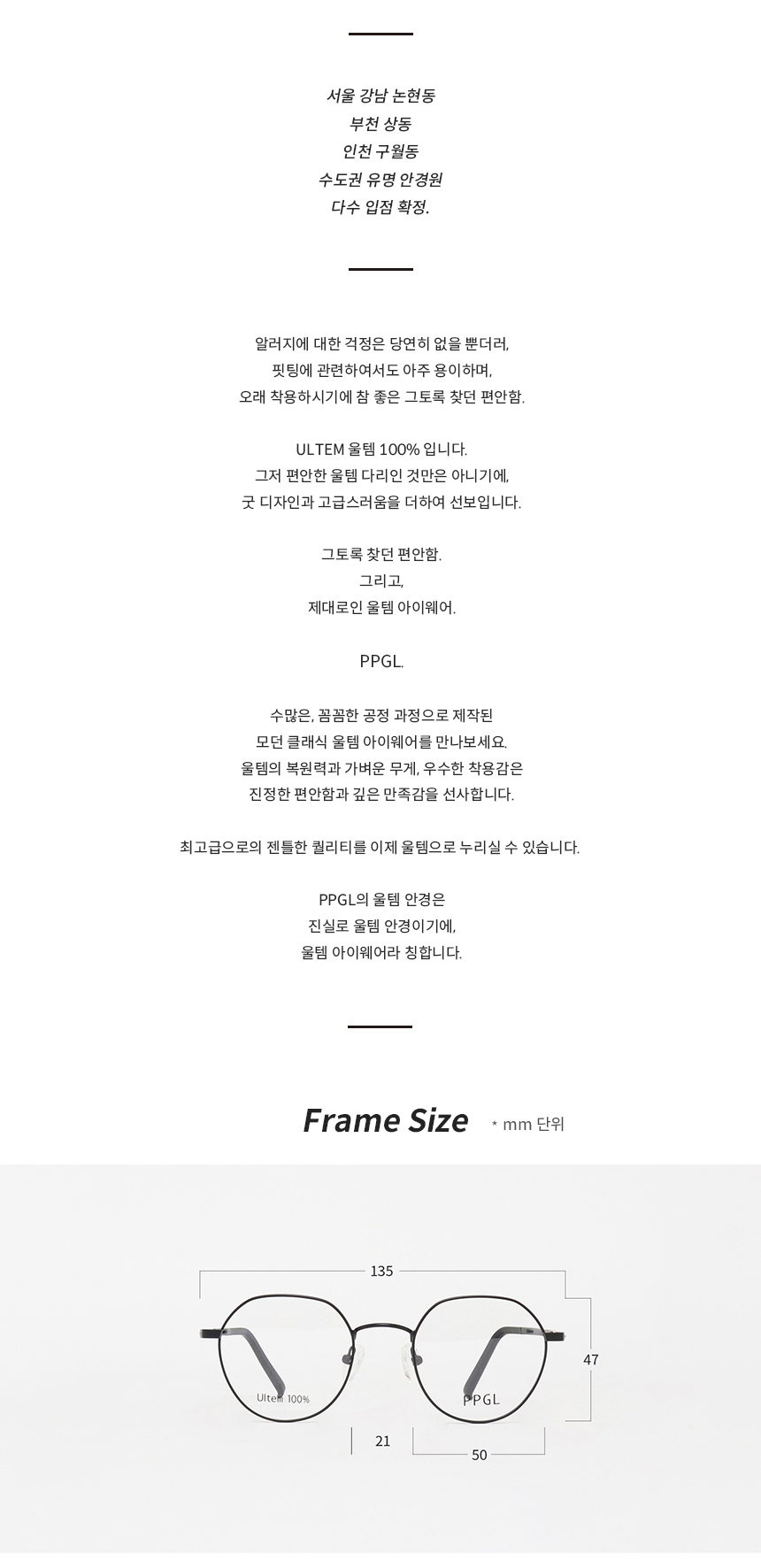 PPGL 초경량 울템 다각 동글이 안경테